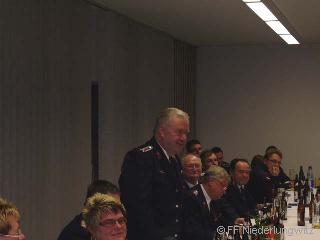 Die Moderation des offiziellen Teils erfolgte durch den zu diesem Zeitpunkt noch 1. stellvertretenden Wehrleiter, Kamerad Wilfried Lindhofer. Nach einer kurzen Begrüßung der Kameraden und der anwesenden Gäste wurde das Wort an den Wehrleiter, Kamerad Ralf Kroschinsky, übergeben. Dieser hat den, wie in den letzten Jahren auch schon, sehr ausführlichen Rechenschaftsbericht für das Jahr 2009 vorgetragen. Diesem war u. a. zu entnehmen, dass im vergangenen Jahr 38 Kameraden in der Einsatzabteilung aktiv waren und die durchschnittliche Dienstbeteiligung bei ca. 24 Kameraden sowie die durchschnittliche Einsatzbeteiligung bei 18 Kameraden lag. Ferner wurde angeführt, dass insgesamt 12 Kameraden zu Lehrgängen auf Kreisebene (4x Sprechfunker, 3x Atemschutzgeräteträger, 2x Motorsägenführer und 2x Truppführer) geschickt wurden. Weiterhin war es möglich, 2 Kameraden an die Landesfeuerwehrschule (2x Gruppenführer) zu entsenden, so dass derzeit unter den 38 aktiven Kräften 10 Gruppenführer, 21 Atemschutzgeräteträger, 25 Truppführer, 27 Sprechfunker, 18 Maschinisten mit entsprechendem Führerschein und 19 Motorsägenführer zu finden sind. Ebenso gab es einige Ausführungen zum im Juni 2009 ausgerichteten Feuerwehrfest sowie viele lobende Worte zu der Zusammenarbeit mit den weiteren Ortswehren und Löschzügen des Stadtgebietes im vergangenen Jahr.