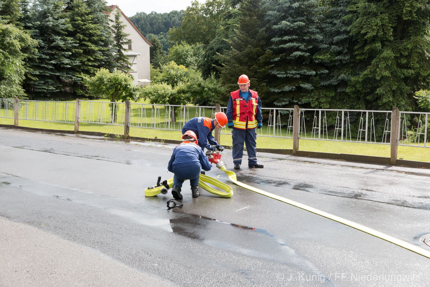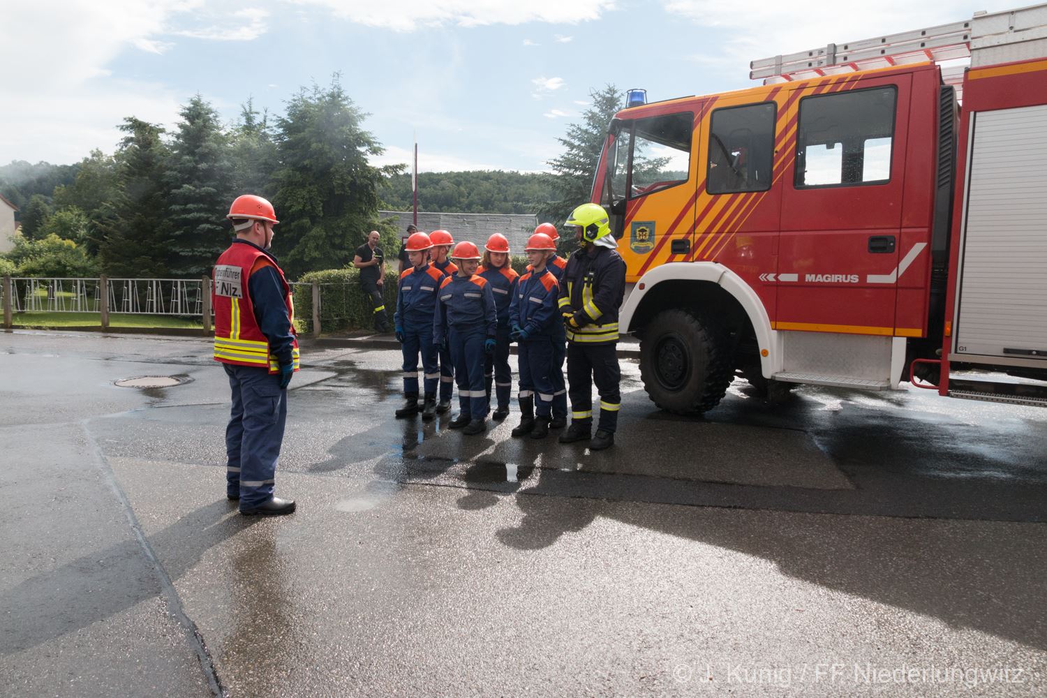 Um das Rahmenprogramm abzurunden, gab es - nach einem kräftigen Regenschauer - gegen 16.30 Uhr eine Schauübung unserer Jugendfeuerwehr.